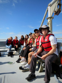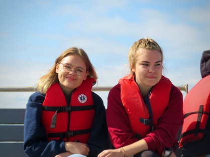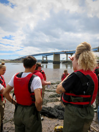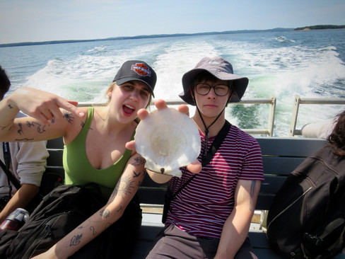 On our first official day, we were out on the water. We boarded the Huntsman's vessel, the Fundy Spray, to venture off for some plankton sampling and a scallop drag. There was plenty to see on and off of the boat. As we left the wharf, the tide was out so the beach was completely exposed. As our trip's resident photographer, I had to get fun candids of my new friends taking in the views and trips, my favourite being my prof and his many birding stances.