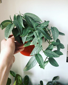 This is where my collection may or may not be getting out of hand, because I need to move all of these into a dorm room (not sure how transportation will go but we'll see). The most recent plants to join my collection are some that require more experience to grow, a great way to test my plant skills and abilities. The first ones are very exciting to me. Their names are Peach (krimson princess) and Bo (compacta) and they are my very first hoyas. I'm very excited to have these ones in my collection, it makes me feel like I know what I'm doing, like I'm a real "plant mom". Super excited to see how these babies grow and if they will ever flower for me when they get older. Then the last plant to join my collection (for now) is my watermelon peperomia named Harry. He has been on my list since I got into this collection, and I finally caved a brought him home and he is looking so fine with the rest of my plants.