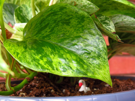 As I continued growing my indoor jungle I learned I have a type. Any plant that has some form of white, blue, or silver-ish colour has a special place in my heart. I don't know what it is they're just so stunning. It started with plants like Michael (scindapsus), and Destiny (marble queen), who had this beautiful colour scheme on their leaves. My favourite of this section, however, is my peperomia frost. Her name is Sheesh (don't ask) and she might have some of the prettiest leaves I have ever seen. She is blue and she literally sparkles, I'm not kidding. Tell her she looks pretty (she already knows it but like she deserves it). The same goes for Moon, the prettiest snake plant out there, he's stunning. (Peep my lil guard goose, Hank)